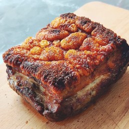 1.Flip the pork belly skin side down and make deep cuts (about 3cm) in a square pattern. This will help the dry rub to penetrate the meat and to make it easier to slice when it’s cooked.