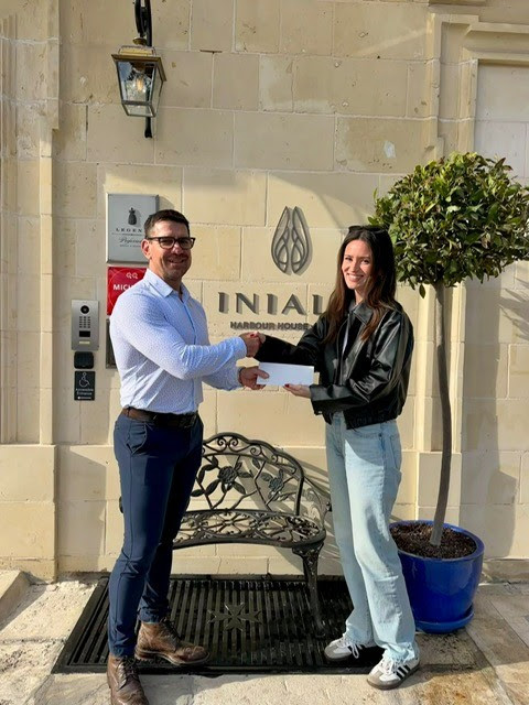 Stephanie Vassallo receiving the prize from Hilton Malta