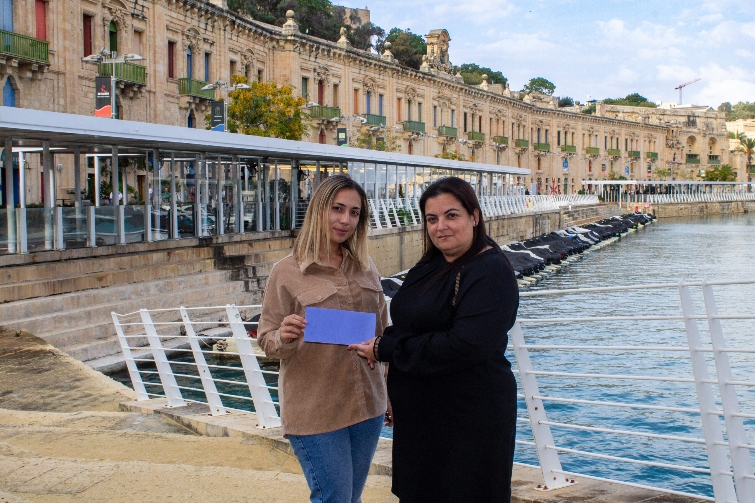 Robyn Pratt (GM, Phoenicia Hotel) presenting the voucher prize winner Anthea Camilleri.Pic;